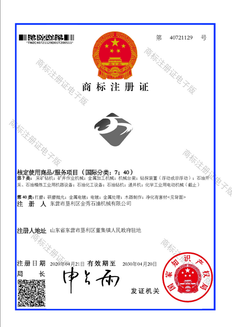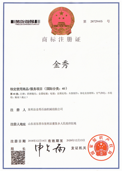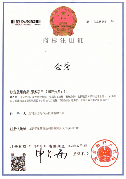 您所在的位置:墾利縣金秀石油機(jī)械有限公司 < 商標(biāo)注冊(cè)